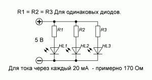 Включаю два светодиода, горят два... включаю три, все равно горят два, почему? ...