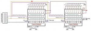 Ну, подал -- и? Если ты про двойной регистр 74НС595, то с ним это не прокатит...