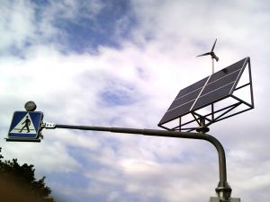 Вот солнечная панель вместе с ветряком, фото в Польше зделал. Питает светофор и подсветку знаков