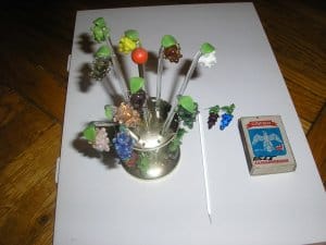 Решил показать немецкий прибор для оформления стола. У многих пытался выяснить его назначение. Сказали, мол это немцы стеклянные палочки втыкают в куски, например, торта гостям. А потом эти палочки со стеклянными же разноцветными ягодками надо воткнуть в подставку строго в те места, где подвешены стеклянные ягодки этого же цвета. Понятно? xaxa
