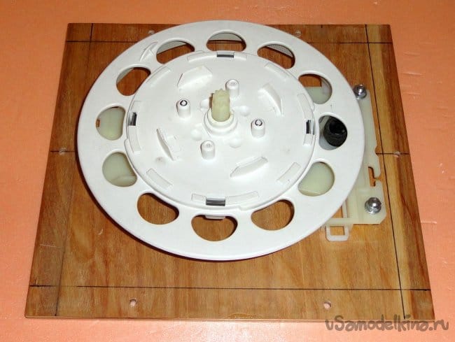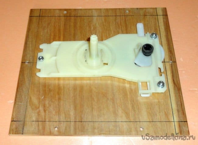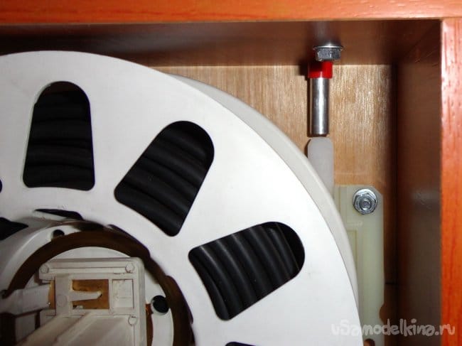Передняя панель корпуса с привинченным дополнительным фиксатором оси катушки.