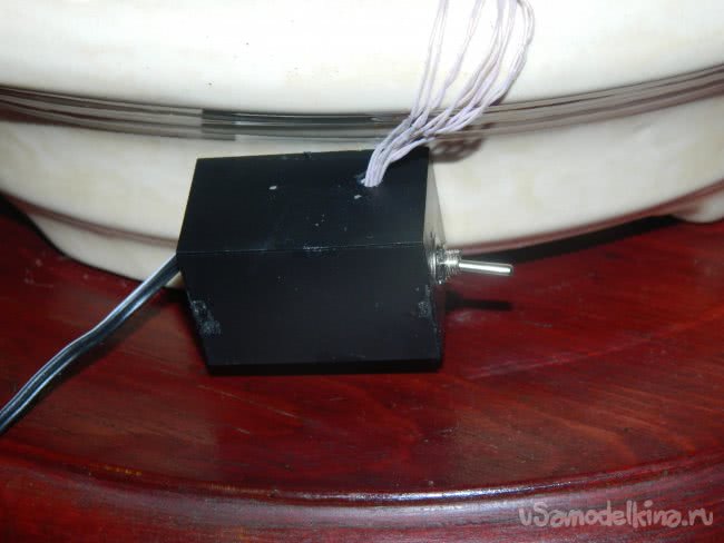 Я попробовал склеить всё эпоксидкой, но ничего не вышло. Пришлось ехать в мой самый «нелюбимый» магазин — Леруа Мерлен — и подыскивать новый вазон. Кстати, раз уж дело дошло до такого, неплохо бы переделать освещение фонтанчика на светодиодное, так как часто приходилось менять индикаторные лампочки накаливания 6,3 В х 23 mA (а это - разбирать весь фонтан!), которые питались от блока питания с переключателем. Кстати, эти лампочки — не цветные, а хотелось сделать всё в цвете.