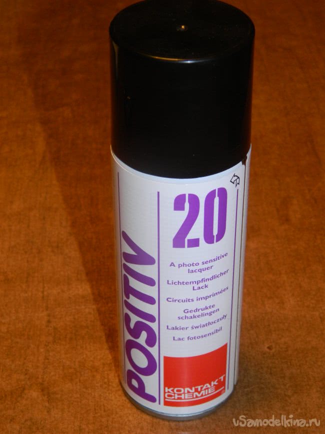 Но дальше я пошёл не по проторённой дорожке и решил использовать первый раз аэрозольную фотоэмульсию (дорогая штука, порядка 1500 руб. — позаимствовал у знакомых радиолюбителей!) POSITIV 20. Раньше я просто рисовал дорожки на плате специальным маркером.
