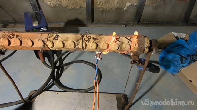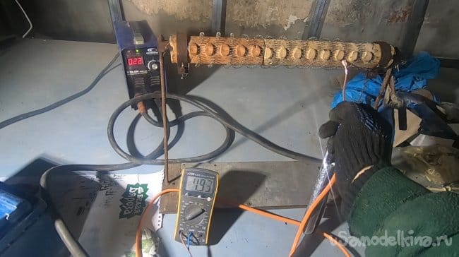 Ток на сварочном аппарате не принципиален, 250А я включил для демонстрации, лучше поставить минимальный в качестве мер безопасности!