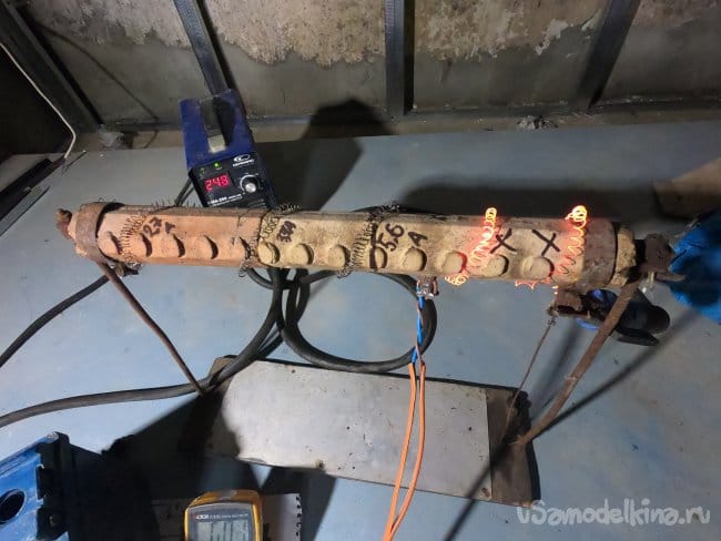 Способ определить примерный ток - по цвету накала спирали. Проволока у меня около 0.5-0.6 см, ярко-красно свечение говорит о токе порядка 6А. Если спираль горит ярко-желтым, ток более 6А. Но это все, конечно, только примерно. Конечно, чуть раскаленная спираль уже позволит безопасно подзарядить АКБ током 4-5А. Но это все примерно, на ваш страх и риск.