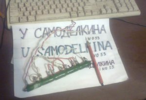 Дома не нашлось мощного блока питания для эксперимента, взял что было, 8 В 3А. в жизни, на мой взгляд, от 12 В будет работать на 1/3 мощнее. У моей машины горлышко бачка узкое, как кувшин, поэтому резистор выбран небольшой. Собственно, и всё. Хорошо бы найти «крокодилы» для цепляния к АКБ, но на крайний случай и так сойдёт. Опытным путём можно подобрать нужное количество витков нихромовой проволоки.
