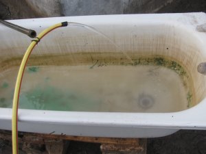 На данный момент скважина раскачивается, дебет вырос с начальных 10 до 15л/минуту, вода пока мутная, с известью. Сначала вымывалось много песка с глиной, сейчас такое не наблюдается. Статический вровень расположен 3 метра под землей, вода не кончается, прошло примерно 7 часов раскачки на момент написания статьи.
