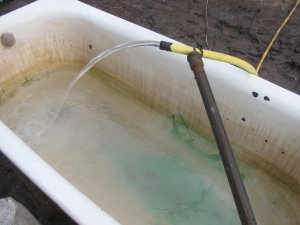 Так вот, забурились мы на три метра, и началось жуткое поглощение воды, ведро воды улетало секунд за 20, я не успевал бегать за водой в колодец. Попали мы, скорее всего в верховодку/плывун, это смесь из глины и крупного песка, вода в этом горизонте грязная.