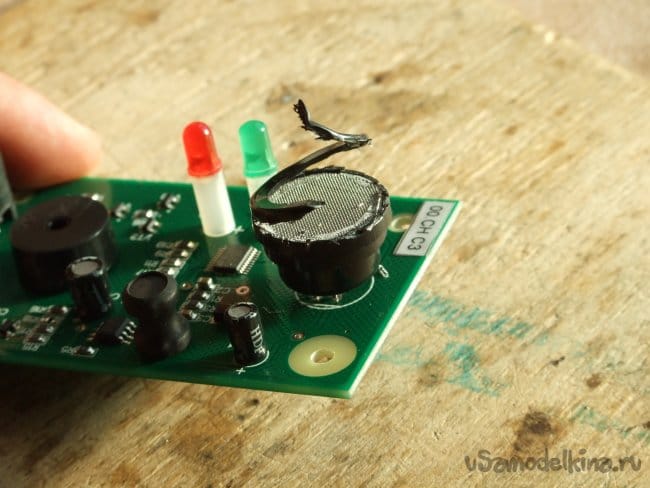 Защитные сеточки приклеил термоклеем к торцу пластикового корпуса датчика, собрал прибор, проверил работоспособность.