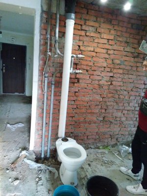 И тут выяснилась ещё одна "засада". После того, как отодвинул ванну, смеситель оказался тоже смещён. Пришлось разбивать перфоратором стену и переваривать трубы: