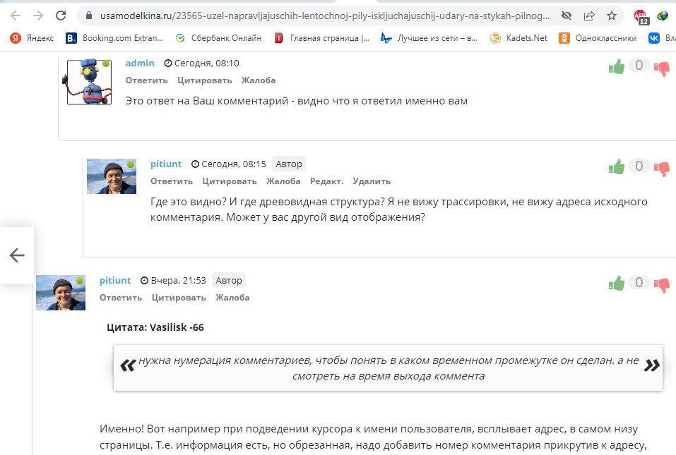 я так понимаю чтобы было понятно на какой именно комментарий дан ответ надо цитату из него ставить?. но это будет занимать слишком много места. нужна нумерация комментариев, чтобы понять в каком временном промежутке он сделан. а не смотреть на время выхода коммента и вычислять хронологию вопрос/ответ.