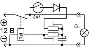 Получилось так – при подаче питания лампа просто светит, а приходит сигнал управления, замыкается SA1 – начинает мигать. На удивление, это их устроило.
