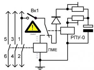 Реле РПУ-0 держит до 4 А на одну группу контактов. (катушка здесь на 110 В постоянки), РП21 - 6 А. Что, еще мощнее надо? Пожалуйста… Сколько ПМЕ 2-го габарита выдержит? Схема внизу. Но это так, шутка юмора, если захотят, пусть сами собирают.