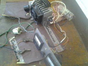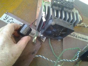 Так как, в силовом модуле имеются отдельные отверстия для пайки проводов, а в модуле вольтамперметра нет, то из обрезков металлической ленты (для сварки АКБ) были вырезаны контактные площадки для латунных стоек. При помощи подбора шайб и стоек для п/п все элементы были закреплены на монтажной платформе. Радиатор установлен с использованием теплопроводной пасты «КПТ-8».