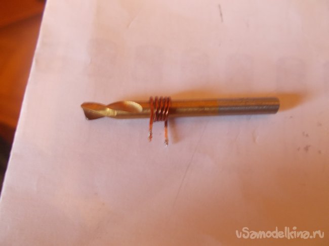 Катушку следует мотать по таким параметрам (7-8 витков проводом диаметром 0.6-1 мм, на оправке 5мм, я мотал на сверле 5мм)