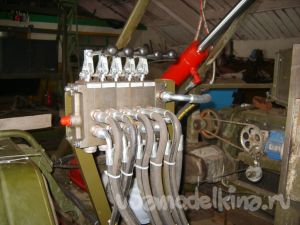 Масляный распределитель и гидроцилиндр подъема стрелы.