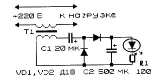 Пацаны-кружковцы (сами где-то схему нашли) в разрыв сетевого провода ставили два встречно-параллельных диода, ампер по 16...25, с запасом. Не помню, что они этими 0.7 В зажигали, но точно несколько чел. собрали.
