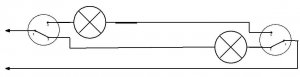 Ну, как -- это тоже вариант, где-то может и пригодится... Главное, чтобы электрик мозги не сломал... А схема вот: (редактор никуда не годный на Андроиде)...