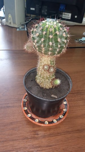 Там ещё и холодно было... Был, бедный, весь скукоженый, пожелтевший и сморщеный...Вот эти мелкие шишки выскочили сразу, на утро после "спасения".А "голова" сверху  у него появилась на третий день после того, как я его полил.