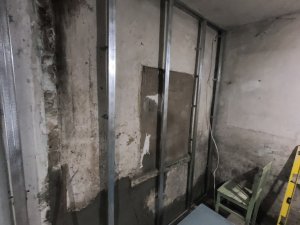 Накрутил вот по одной стороне уже профилЯ, завтра пойдет следующая стена и обшивка этого помещения. Может частичная, поскольку отопление пока нестабильное и боюсь сырости за гипсокартоном.