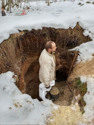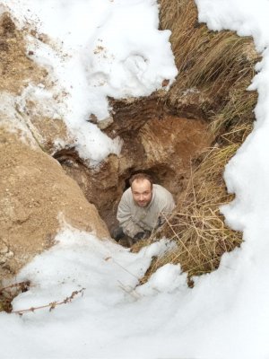 Вот такая норка, упало на голову аж в шее чето хруснуло, обвалилось. Оно там горизонтально под землей потом идет. Пошел мыть. А печа все работает.
