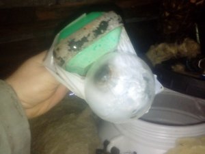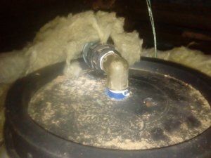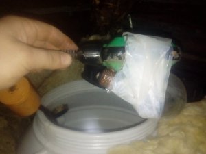 Поплавок обычный, но усилен лампочкой на 150Вт, он просто ооочень слабо всплывает и постоянно килинл, цепляясь за ребра бочки. А сейчас он всплывает с любого положения, никогда не клинит. Все обмотано стекловатой, -15 пока держит, ледяной корки не видать.  drinks