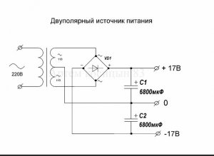 Двухполярный +- 15 вольт, вполне сгодится два маломощных, например от антенного усилителя телевизионного, или роутера. ну в общем пара любых с током от 100 миллиампер и выше. Необязательно чтобы они были на одном трансформаторе, или вообще в одном корпусе.