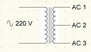 Вы нарисовали условное изображения трансформатора с питанием от 220 вольт, но не указали выходное напряжение,  и мощность этого трансформатора.