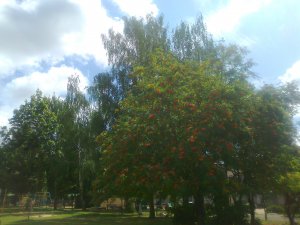 Это рябина краснеть начинает, темнота! Сирень-то желтеет... yes
