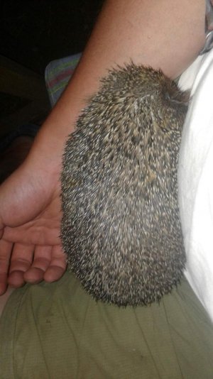 Да, я знаю что ежи переносят много заразы. Я же насильно его из кустов не тянул, он сам к нам приполз) Значит дружелюбный. Потом долго ещё вокруг бегал, хотя покормили)