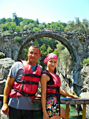А почему в лодке нет моей супруги?...Да потому, что она сплавляется на одноместной байдарке!!!  А вот так, как мы - считает баловством!)))))... И синяки были... И с камня посреди потока мы её уже снимали...Но, всё равно! Экстрим ей нужен!!!
