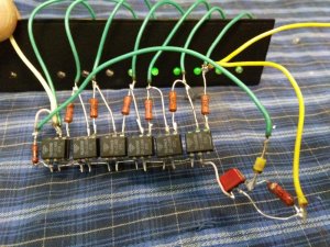 Следующим этапом самоделки, была придумана схема и произведена комплектация компонентов 80-ых годов. С моими глазами их можно увидеть и с моими руками их можно потрогать. Поэтому я применяю радиодетали с которыми можно работать без микроскопа. Вот такая смонтированная схемка получилась.