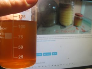 Бродило это дело около месяца, после чего процесс стал очень медленным и я аккуратно слил сок с осадка в новые банки. Провел дегустацию, градус уже есть, в груди греет, а это не менее 7-9%. Но был очень насыщенный вкус, типа как персиковый сок из магазина, а также сильный запах дрожжей. Ну ничего, на следующее утро даже после этой бражки (стакана) я чувствовал себя отлично.