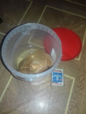 На 3 день будет много сока, а из ведра будет идти довольно мощный духан. Ведро у меня было прикрыто крышкой, лучше не занюхивайте, так как можно потерять сознание от большого количества углекслого газа. Отжимал я через синтетическую тюль, ну типа как доил корову