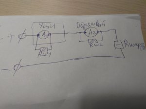 При последовательном подключении "образцового" прибора и замерах, УЦИ необходимо отключать, так как шунтирующие резисторы приборов, будут включены последовательно и следовательно показания обоих измеряющих приборов, будут ложными.