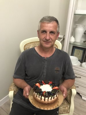 Но приехали дети, привезли торт (дочка сама сделала), бутылку коньяка и новый телефон. (У меня в старом распух аккум так, что крышку стал отщёлкивать)))) Так они это увидели и купили мне под ДР какой-то, по их мнению, крутой. "Ипхоне" называется (только нерусскими буквами)))). И яблоко надкусанное...