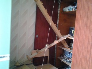 У меня, когда-то, в общаге, люстра была похожая. Только на четыре "плафона". Двое плечиков с выбитыми перекладинами перекрестил на одном крюке. (Не такие, а с тонкой верхней планкой, помнишь, были). А плафоны - бутылки от 0,7 с обрезаными донышками.))))