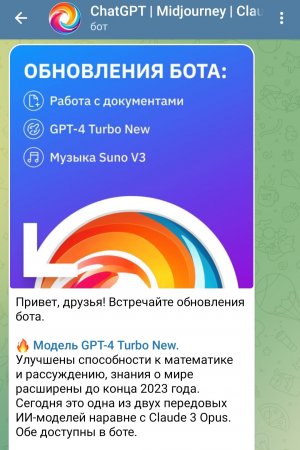 1. Иногда пользую бесплатный бот чат gpt-4 в телеге. Недавно вышли и обновления: