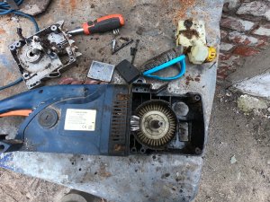 Вот такая есть удачная версия китайской пилы. Мотор мощный, не греется, режет хорошо. Думаю как ей срок продлить. Разобрал, в редуктор опилки попадают, наверно надо герметезировать?