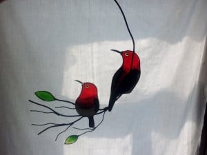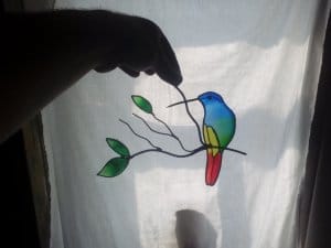 При закреплении стекол использовался принцип, применяемый в витражной технике Тиффани – края стекол оклеиваются медной фольгой (края стекла заключаются в С-образный профиль) и опаиваются.