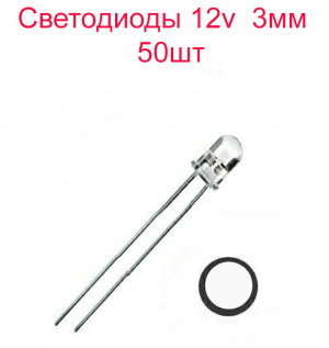 Светодиоды 3м 12 вольт белые холодные 50шт. со встроенным в корпус smd резистором