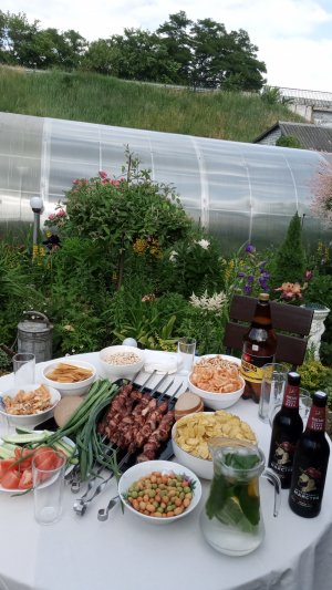 Вчера чуть не помер... Давление скакануло за 200... Целый день "в голову гвозди забивали" ... А сегодня хорошо... Дети приехали... Шашлычок... Дочка махито сделала... Я пЫва взял....