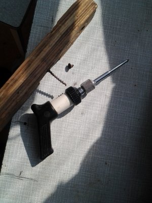 Первый раз такое вижу... Брусок к столешнице снизу прикрутить хотел. Шуруп крутился с трудом, еле-еле. За шуриком лезть лениво, взял отвертку с пистолетной рукояткой. Сначала он, шуруп, не хотел крутиться, а потом так легко пошел... Присмотрелся: