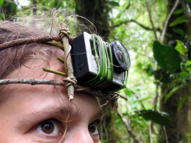 Из гипсокартонных подвесов делаешь кронштейн для камеры. Прикручиваешь его к кастрюле. Одеваешь кастрюлю на голову! Всё!!!  И камера держится, и шлЁм голову защищает от пять джи!))))