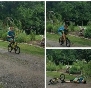 ага, на велике без них гонял, шоб быстрее... раз футболиста на полной скорости сбил, раз мужика одного, внезапно выбежавшего из подъезда... а еще пару раз чуть сам не убился