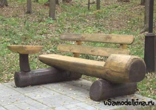 Итак, Вам понадобится: топор, пила и лак по дереву. Для начала необходимо определиться с длинной скамейки и отпилить ненужные части от ствола. Затем с помощью топора следует выдолбить в стволе нишу, в которую будет удобно сесть. Будущая лавка помещается на несколько поленьев, которые крепятся к ней гвоздями. Эти элементы придадут устойчивость всей конструкции. Лавка из ствола дерева покрывается лаком и устанавливается на нужное место в Вашем саду. Также по такой же технологии можно изготовить стулья и столы, которые отлично впишутся в садовый интерьер Вашей усадьбы.